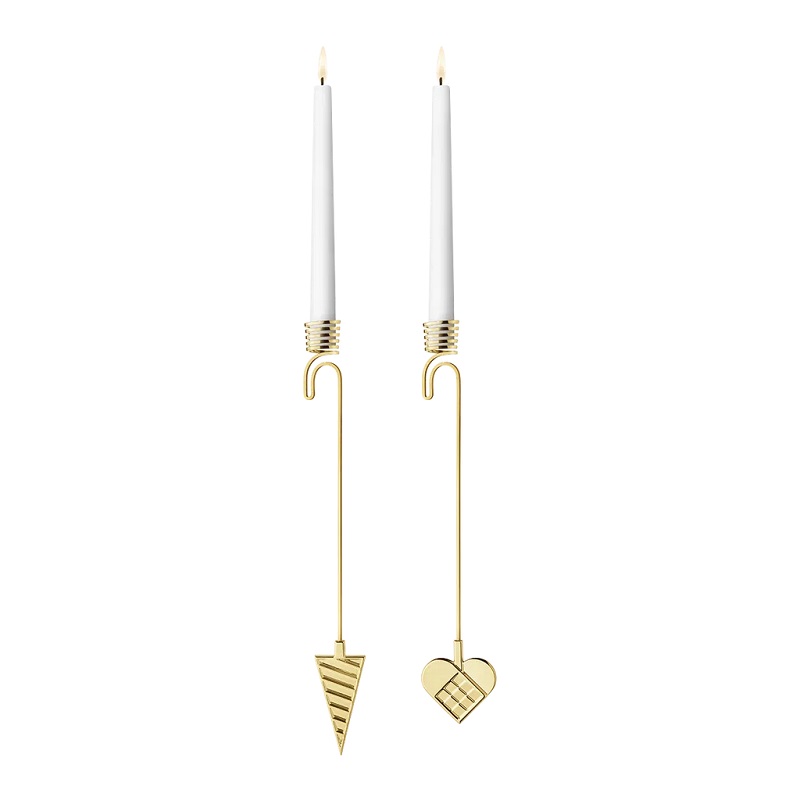 Ge din julgran en värmande glöd med detta set med 18 karats guldpläterade ljusstakar, var och en med en elegant nytolkning av klassiska danska julmotiv. Setet innehåller ett kræmmerhus och ett julehjerte – traditionella dekorationer handgjorda av färgglatt papper för att pryda hemmen under julhelgen. Dessa designer, som är en del av Georg Jensens Christmas Collectibles-serie 2025, kombinerar nostalgisk charm med sofistikerat hantverk. - Egenskaper