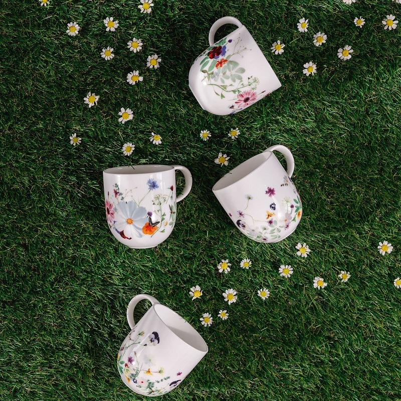 Lika uppfriskande som en promenad i frisk bergsluft presenteras blomsterdekoren Grand Air naturligt och lätt på Rosenthal-formen Brillance. Den schweiziska textildesignern Regula Stüdli tar betraktaren med på hennes resa genom en naturlig örtträdgård, där den är grön och blommande. Här växer fina blommor, tillsammans med aromatiska vildblommor och kryddiga örter, vilket skapar den graciösa och sofistikerade dekoren Grand Air. Här hittar du ätbara blommor som krasse, prästkragar och mycket mer tillsammans med timjan, rosmarin och lavendel. De fina avbildningarna av gräs, örter och blommor betonar det transparenta utseendet hos det ädla benporslinsmaterialet.